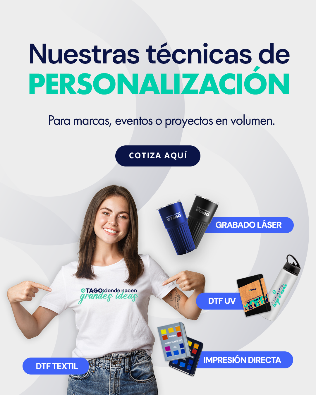 En TAGO transformamos objetos cotidianos en herramientas de comunicación que refuerzan la identidad de tu empresa, transmiten profesionalismo y generan recordación de marca.