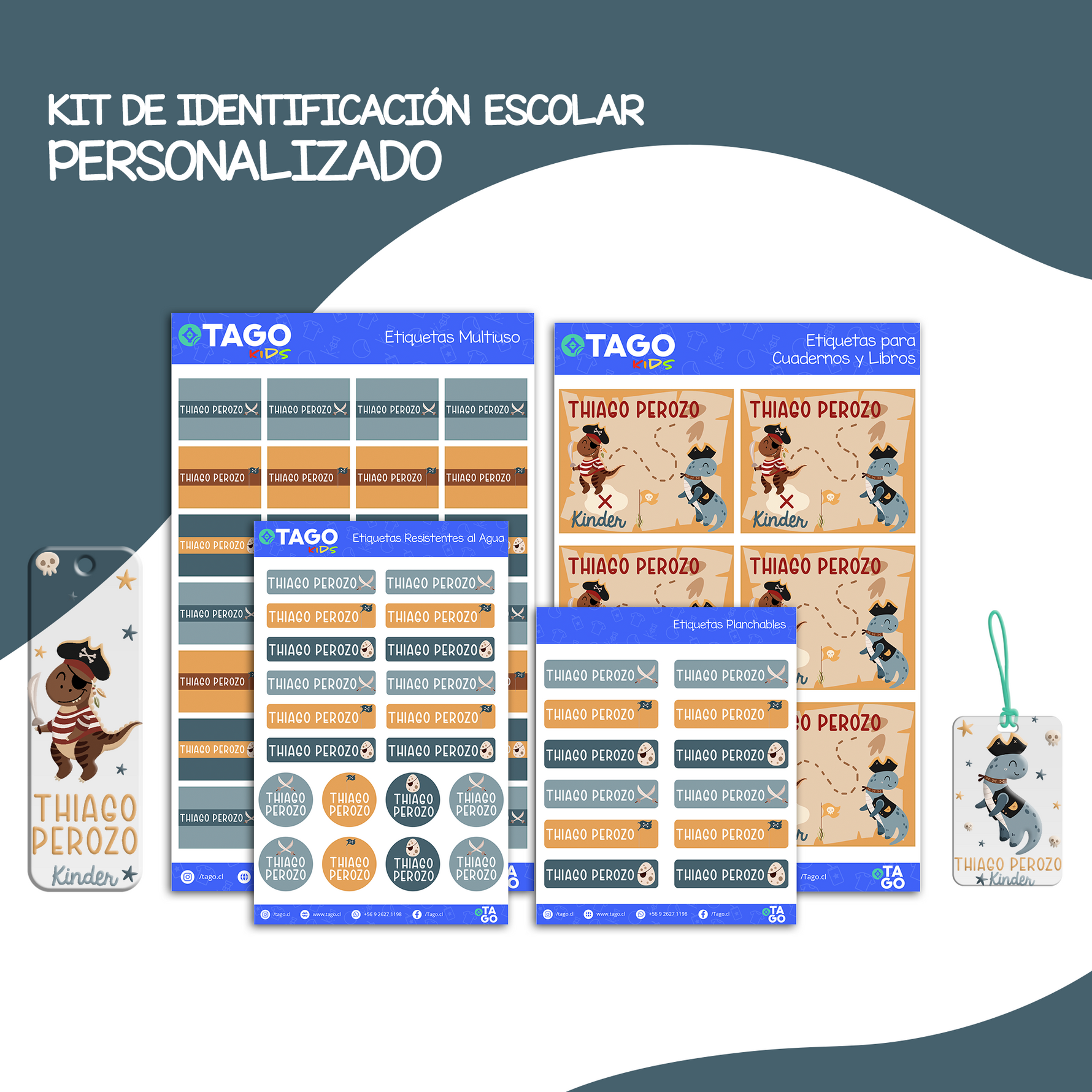 Kit de Identificación Escolar Personalizado - Dinosaurios Piratas
