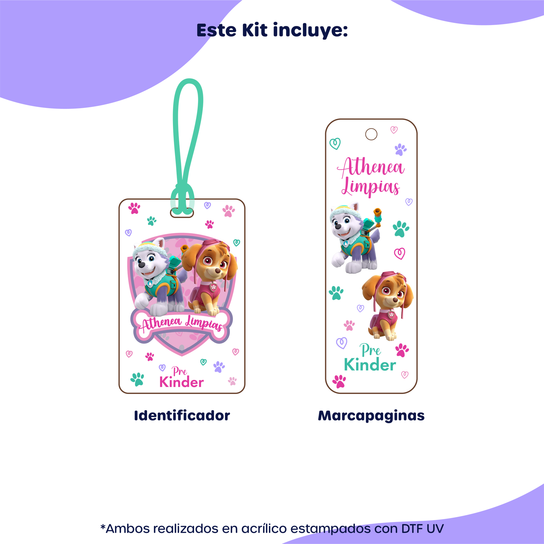 - 1 Identificador en Acrílico: Perfecto para mochilas o bolsos, estampado con DTF UV. Medidas: 8,5 cm x 5,5 cm.