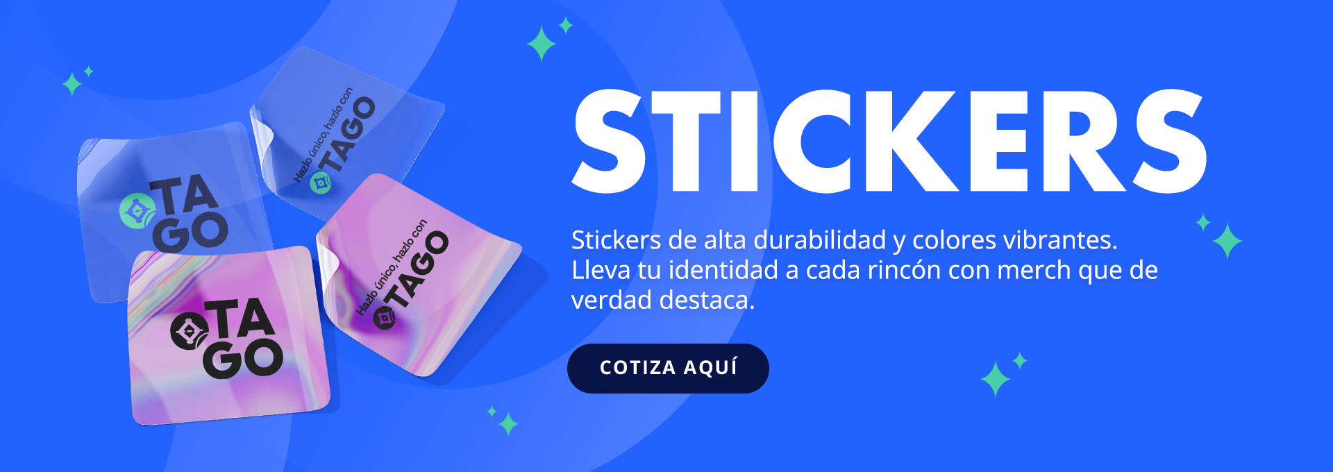 Con la tecnología DTF UV de TAGO, obtienes stickers personalizados con colores vibrantes y una resistencia superior. Tu identidad presente en cada objeto, lista para destacar.